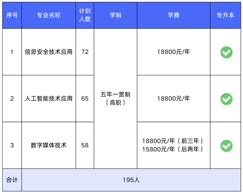 五年学习直通大专学历,同时学院专升本连续多年推荐升本率超过98%,2023年、2025年上线率100%,升本率100%